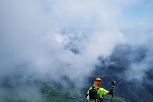 翻过山脊后顺势飞泻,形成瀑布云奇观