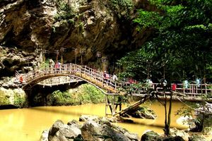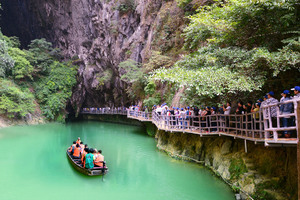 洞天仙境它与陶渊明的《桃花源记》所描述的意境完全吻合。乘船进入一个巨大的神奇山洞,洞中有天、洞天相连,洞内长满了各种奇花异草,犹如进入了一个洞中花园。
