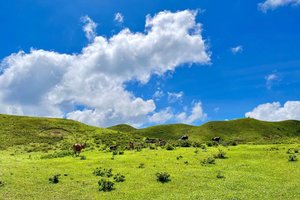 ◇12:00 到达山顶,在这里午餐(自带干粮)、休息、拍照。看看连绵不断的草坡。