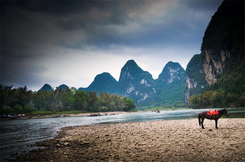 穿过桂林众多的山峰小路,一路风光无限。经甲天下风景段,来到【九马画山】,坐在漓江边,体验著名的桂林山水精华,可以在漓江边玩水,拍照,一起来个美美的大合照。