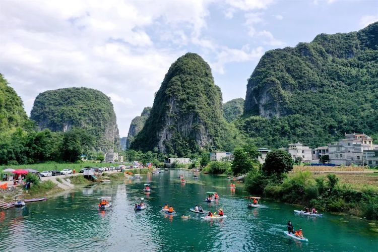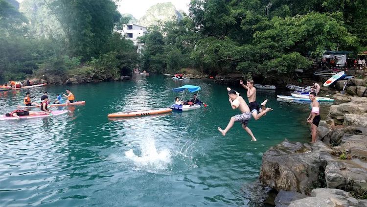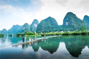 遇龙河漂流,还有“深潭、险滩、流泉、飞瀑”的佳景,是岩溶地形发育典型、丰富和集中地带,集中了桂林山水的精华,令人有“舟行碧波上,人在画中游”之感。
