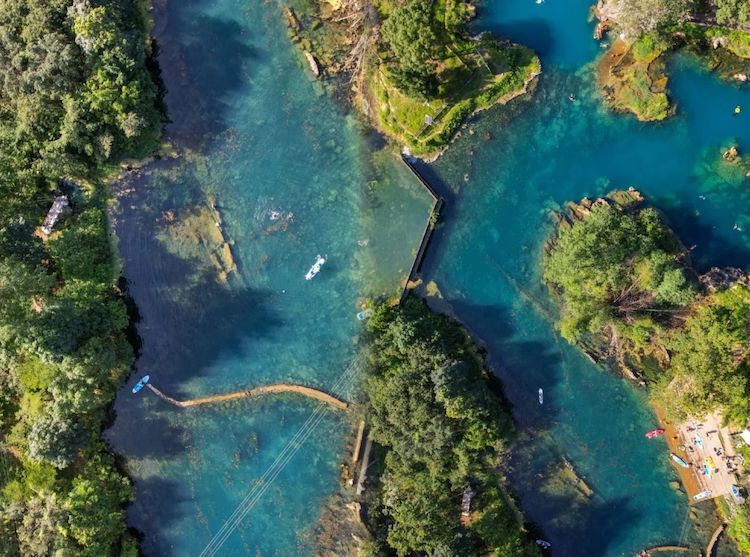 神秘天窗群与地下河水系相通,神奇而美丽,湖水清莹剔透,碧蓝如珠,被称为“大地之眼”。