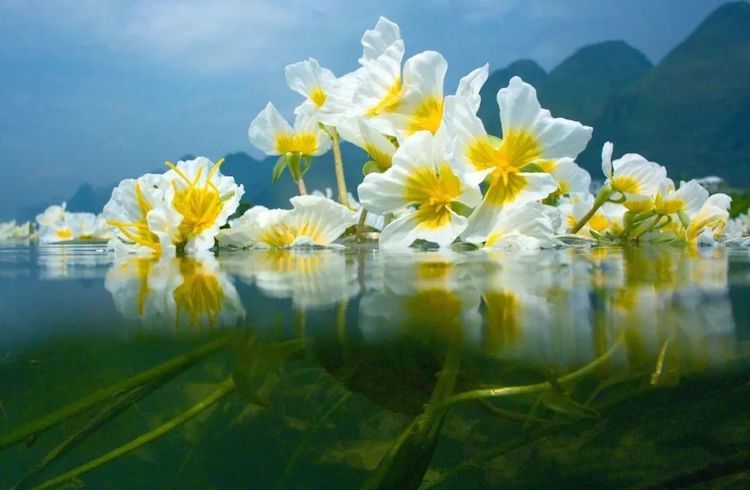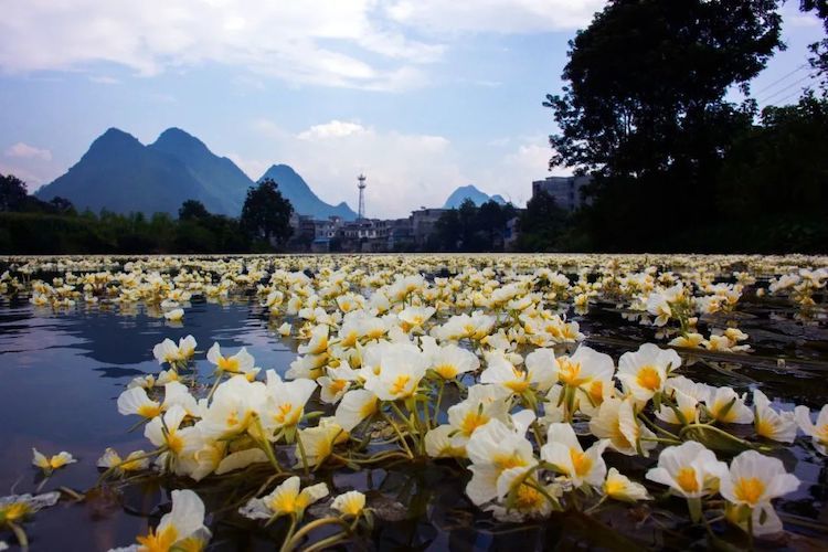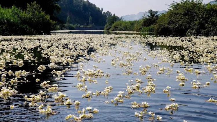 每年5-10月,水里长出了海菜花,成为一道非常独特的风景。