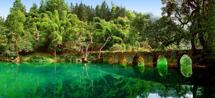 这里的水如梦幻果冻一般,自带滤镜,冰冰凉凉,常年保持19℃的水温。冬暖夏凉,泉眼深不可测。