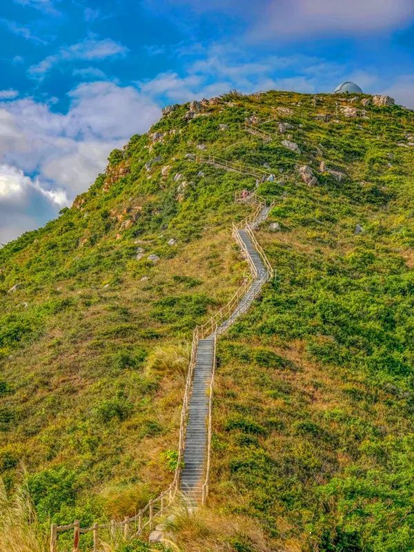 从海边一路延伸到天文台的海天栈道,海天一色风景一流,目测有500到600左右的台阶数,半小时左右即可到达天文台。站在悬崖栈道上吹着海风,回望这海天一色的山海奇观,感觉世界都是自己的,真的很美。