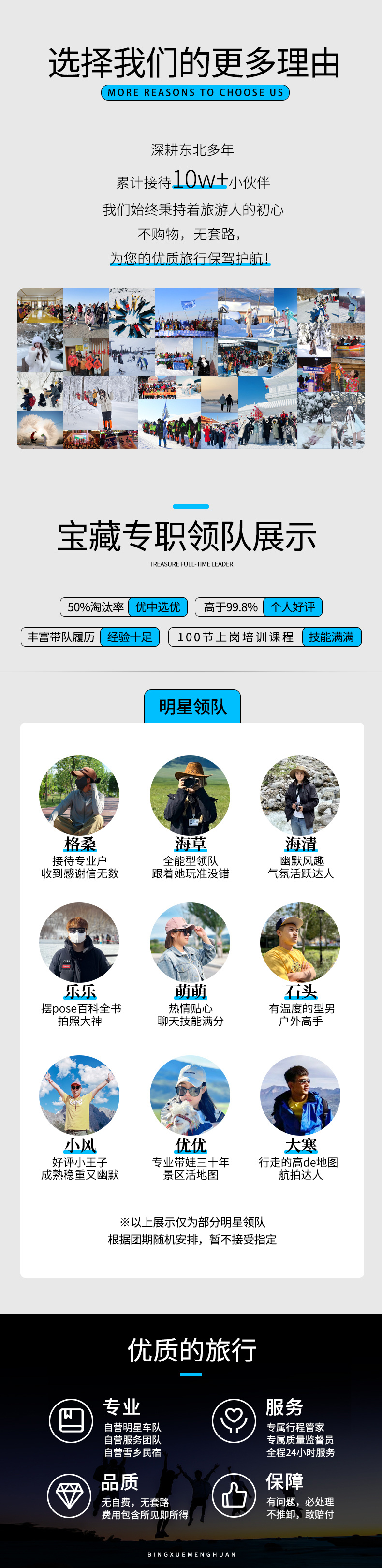 4、长白山北坡有很多小景点,除天池外其他景点可能根据当天景区内客流量情况进行增减,行程中的游览时间和游览景点仅为理想情况参考,我们会尽量安排,但是不能保证当天能全部游览,望您悉知。