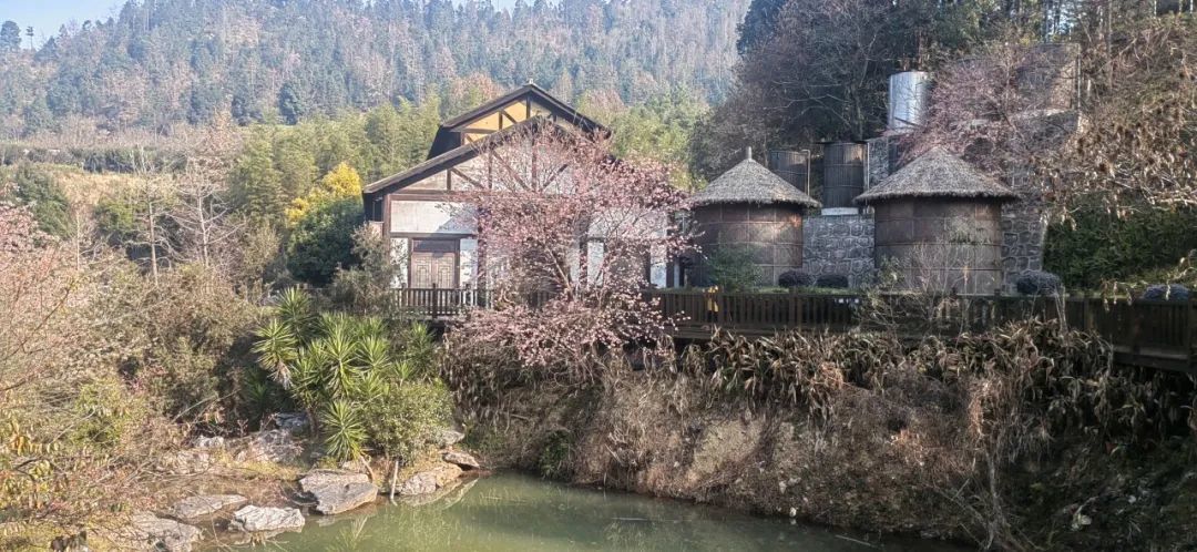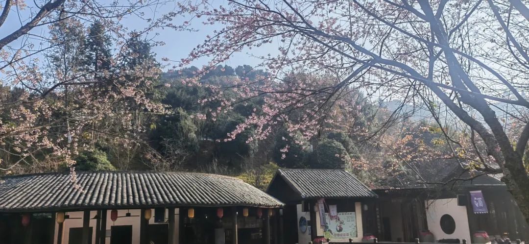 依山傍水,屋檐下盛开,显得更有意境(2月实拍)