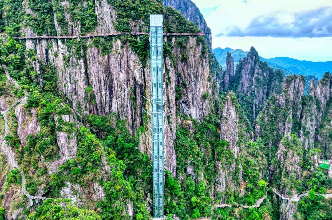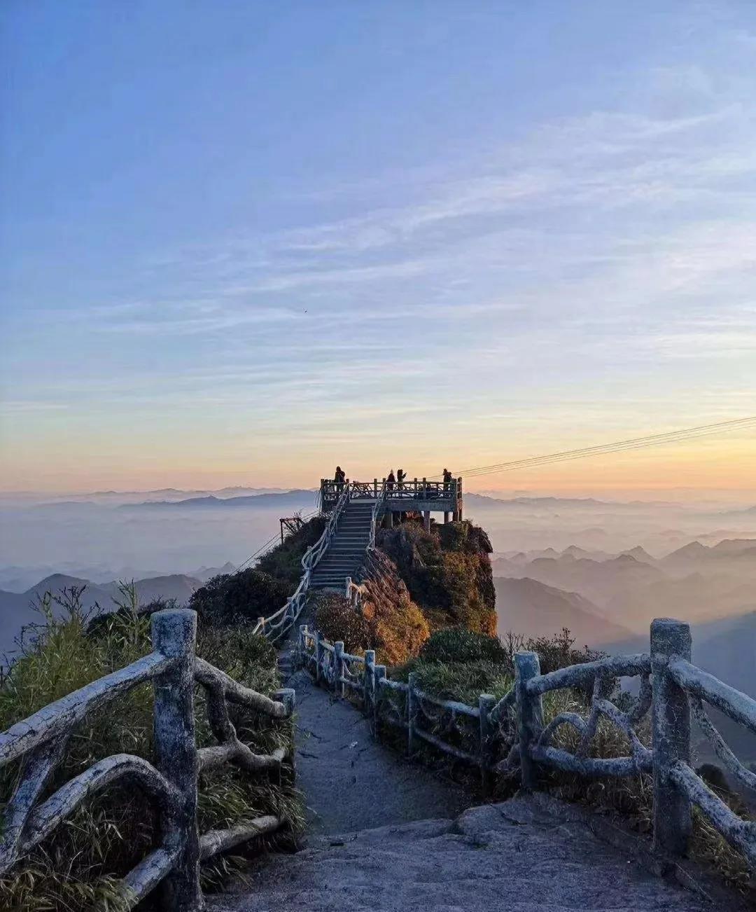 10:30 深度游览五指峰景区,漫步悬空栈道,南中国最长的悬空栈道;总长约8公里,海拔1400米至1600米,两层栈道,全程无障碍观光环线,登高山、临绝壁如履平地,尽享“非人”奇遇。