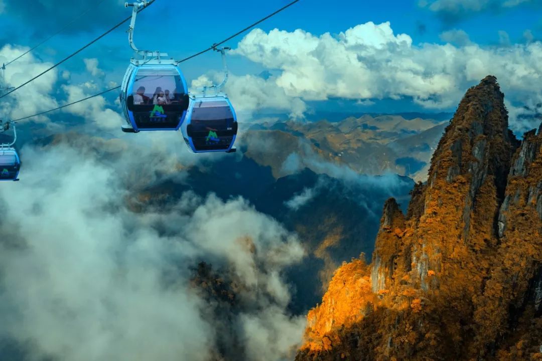 10:00自由到达景区东门口,坐景区接驳车,然后换乘缆车上山(没有其他交通工具,缆车费用自理);南中国最长悬空栈道:乘坐中国目前最长索道单线的观光缆车【五指峰索道】索道全长3.7公里,全国单线最长;每小时客运量达2000人,全国功率最大;全球索道极限高差,达1000米,创造了全国乃至全球索道领域的多项第一,堪称“世界一流、中国第一”五指峰索道。