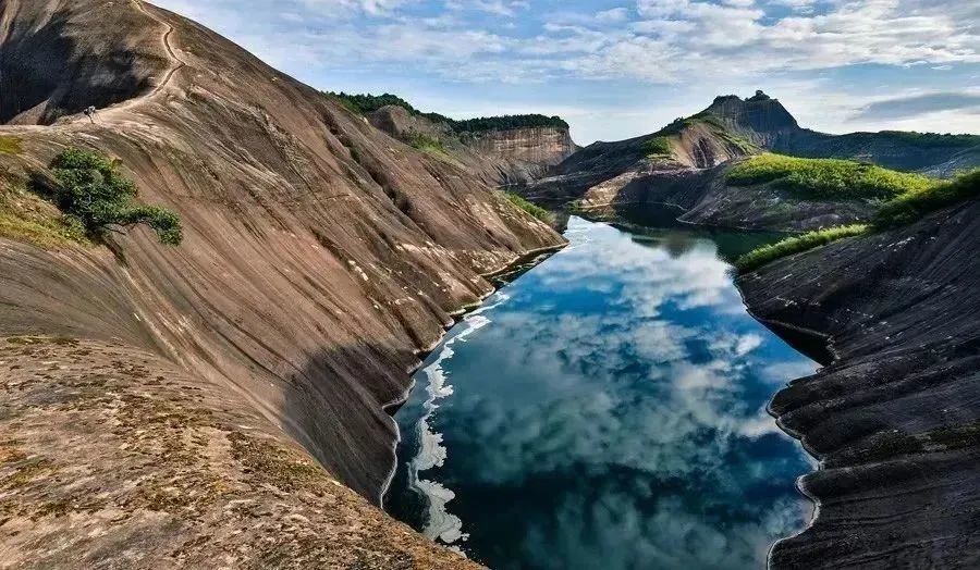 最大的特点就是巨石丹崖周边有漂亮的水洼点缀、