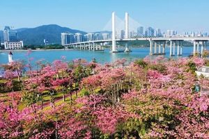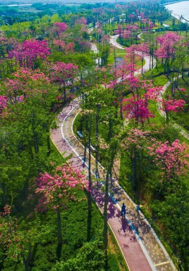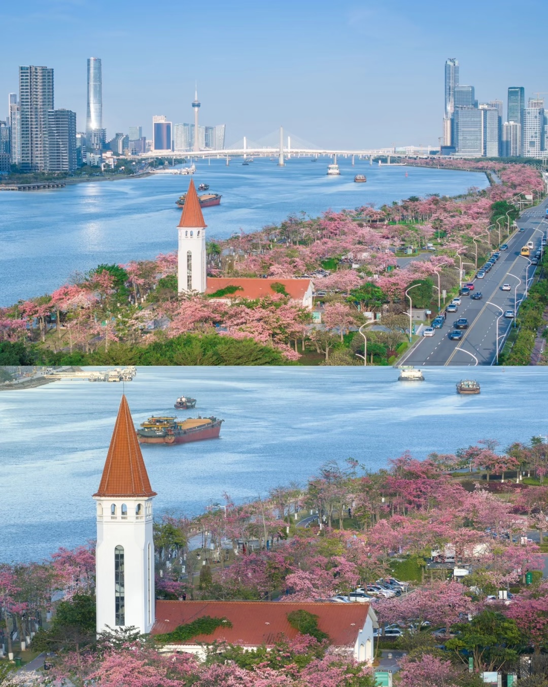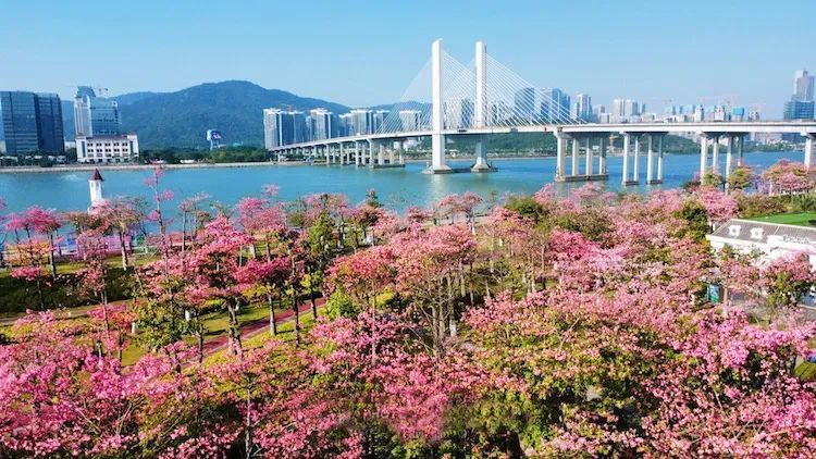 与澳门一海之隔拥有美丽的花海景观,根据不同花期,种植有樱木棉、凤凰木和木棉等。