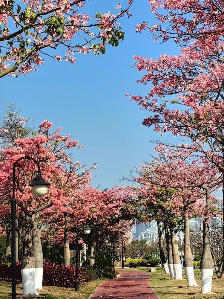 14:45 左右到达【珠海横琴花海长廊】,沿着长廊拍摄花海,对面就是澳门,这里的花海全程14公里,途中有多个驿站可停留休息。11-12月是花开旺盛期,万紫千红的异木棉都在努力绽放着,是冬季 zui 佳赏花好去处(游玩大约2小时,之后集合回家咯)