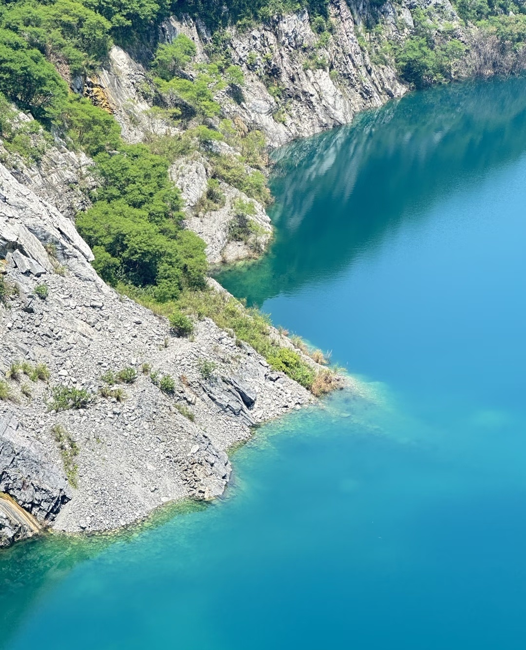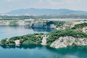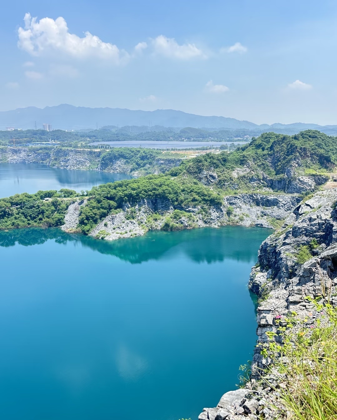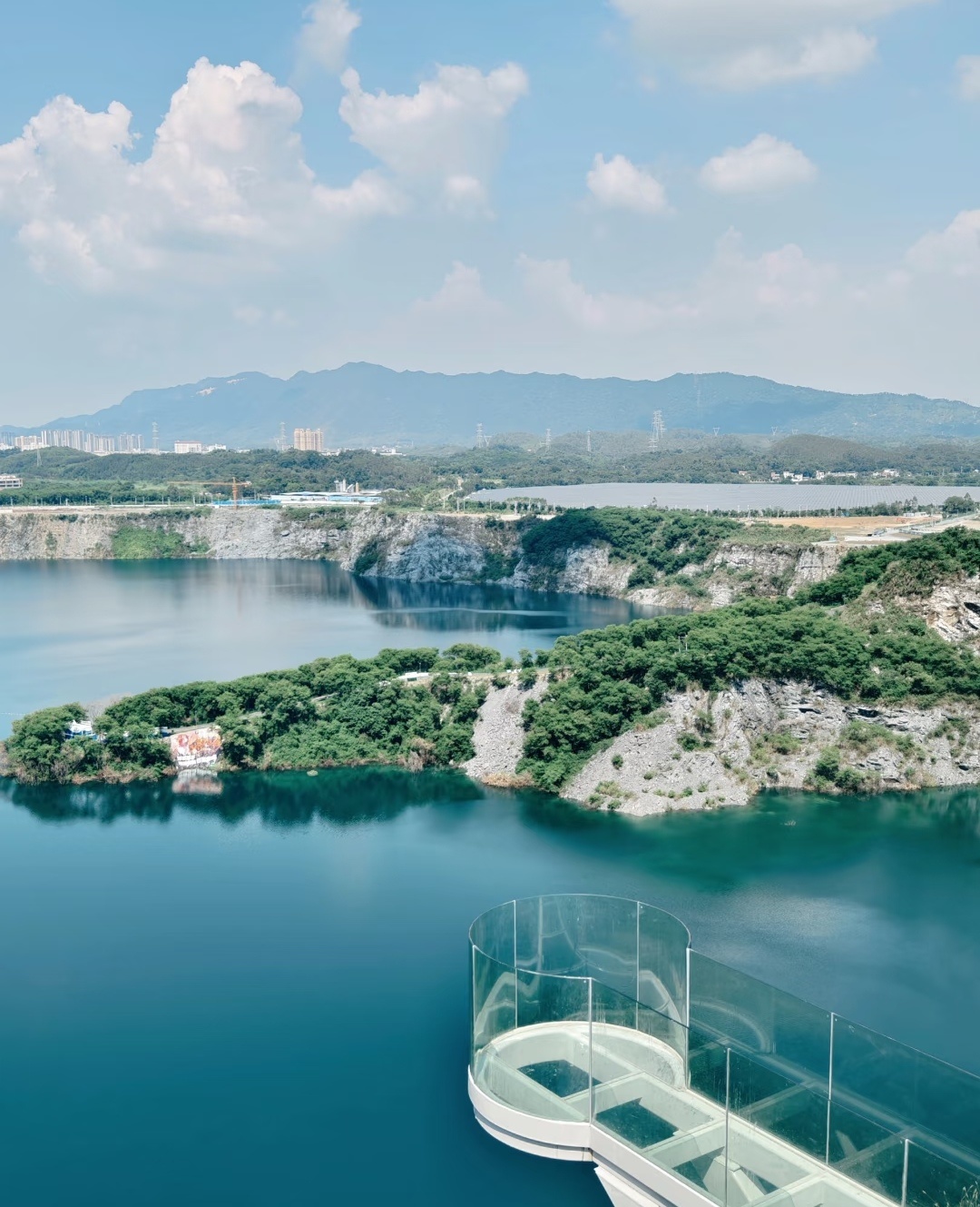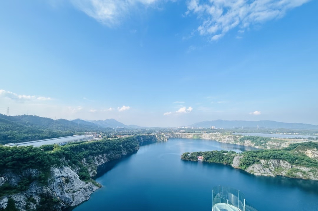 广东居然还有个这么小众又好看的地方!被青山绿水环绕~湖水蓝得像宝石,旧矿山改造的咖啡馆也太有感觉了,工业风+自然景完美碰撞!阳光洒在湖面上,湖水蓝得像巨大的蓝宝石,波光粼粼。