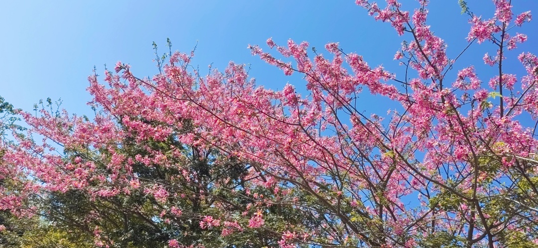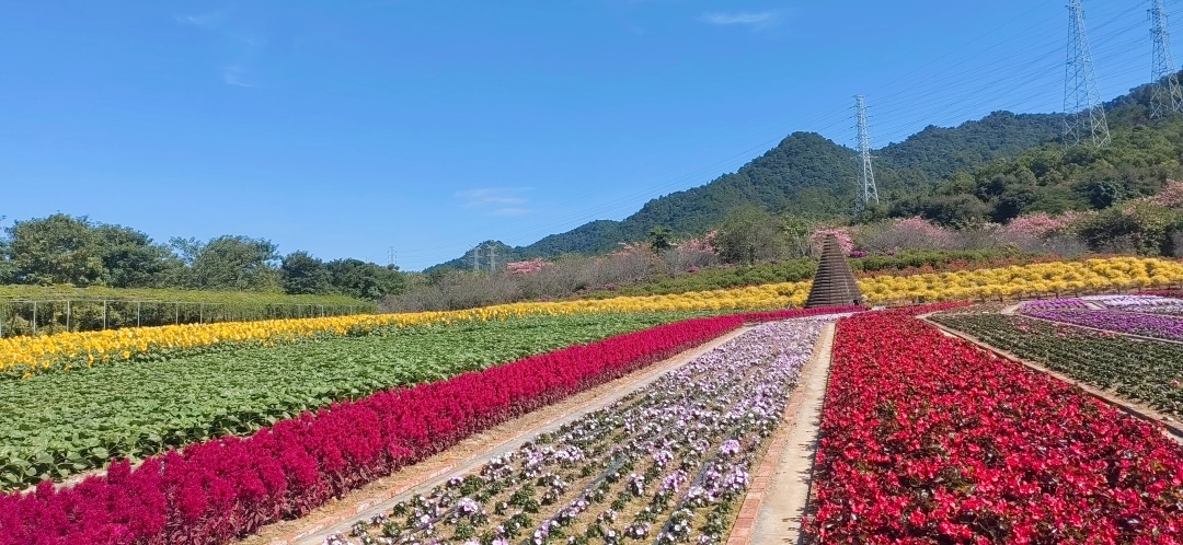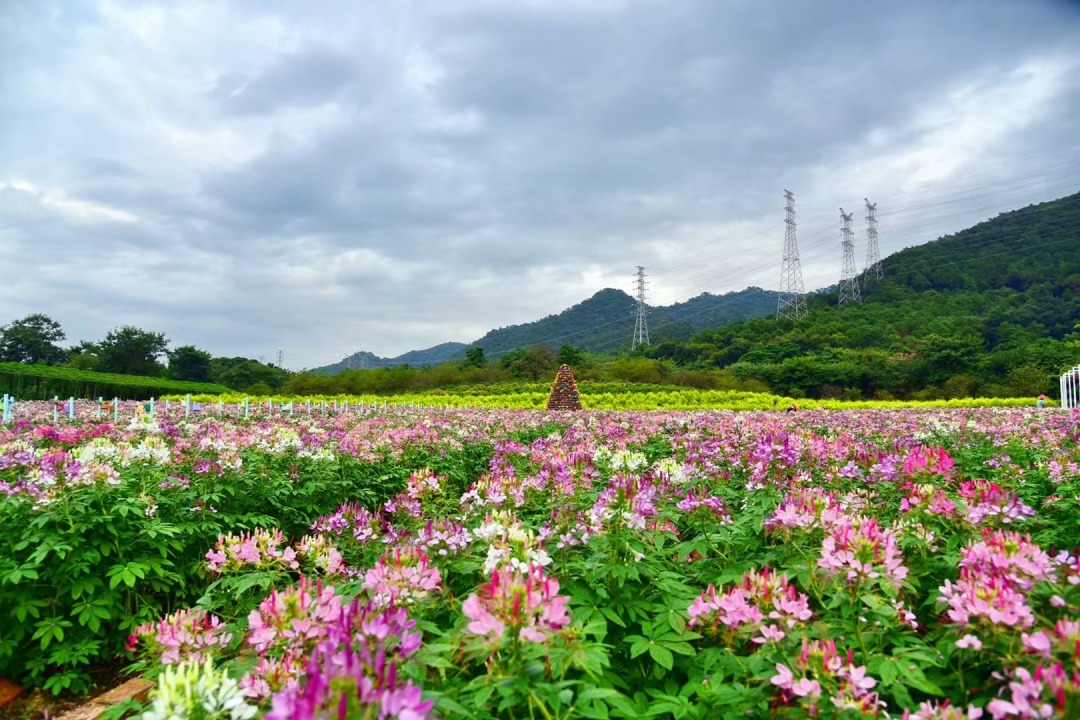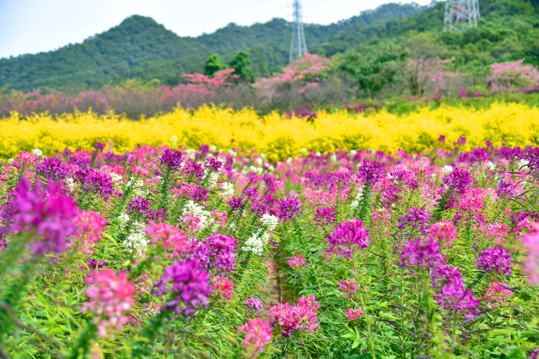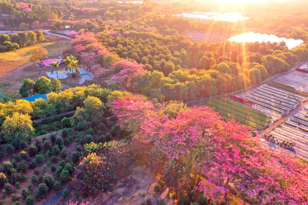 还种植了紫花风铃,以及3万株茶花艳压枝头,醉蝶花铺就七彩花毯,美丽异木棉如云似霞,色彩顺着花田绵延至远山,将“阳光裹着花香”的诗意场景具象呈现。
