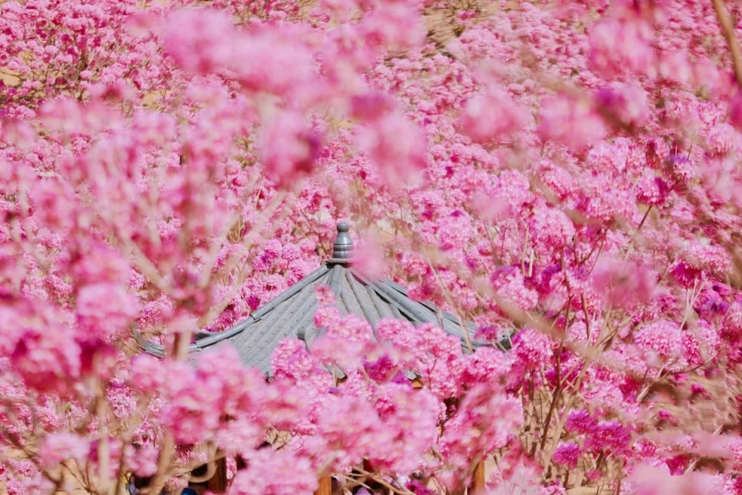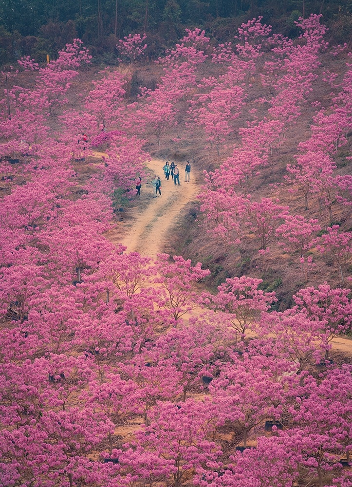 远远望去,像一片粉嫩海洋,蔚为壮观吸引游客咔嚓拍起来