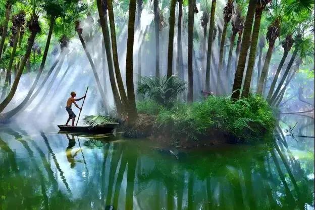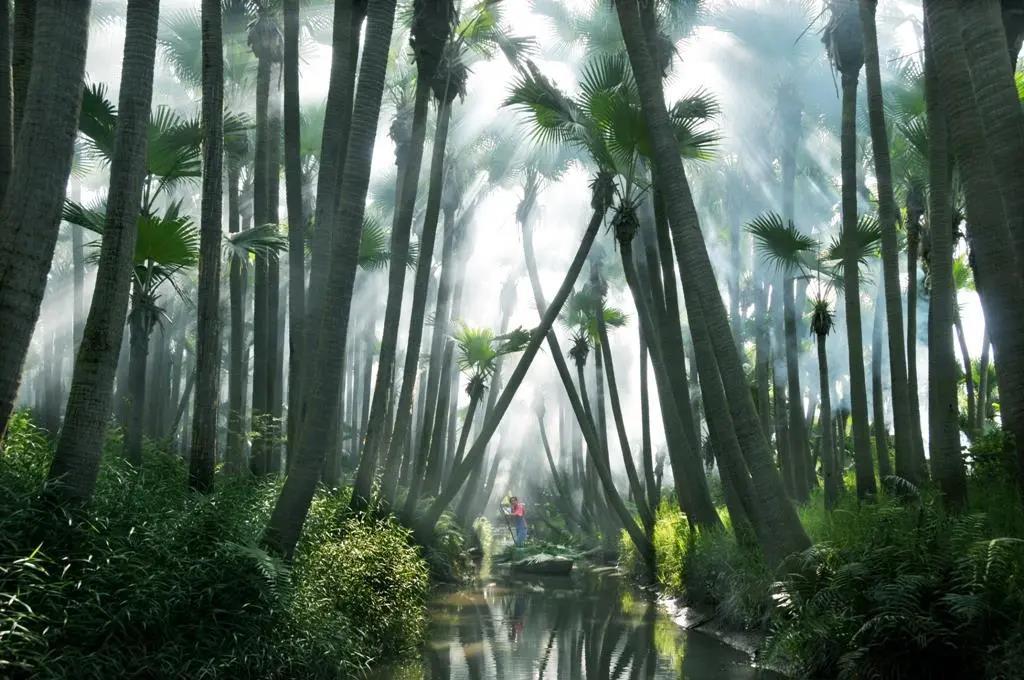 沿黄克兢大桥桥下转入,便是南坦葵林绿道。曲径通幽,小河流淌,高大的葵树遮天蔽日,细小的光块在小径上跳跃。